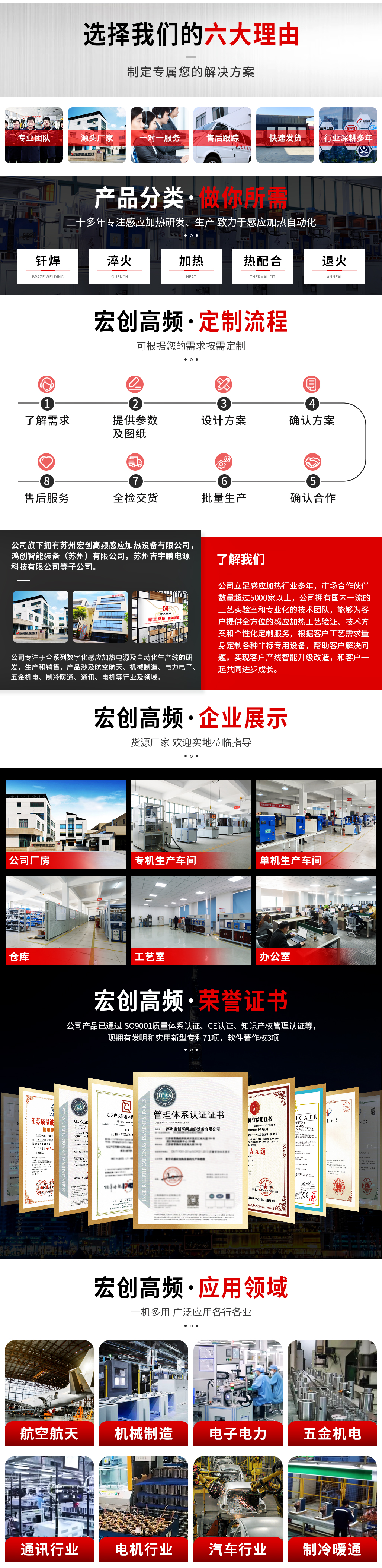 规模量产 production生产厂家直营,欢迎实地考察洽谈,可针对钎焊/热装/热拆/退火/透热/热锻/预热/平面加热/手持式/淬火等工艺给予解决方案;年生产能力上万台。 生产厂家直营,欢迎实地考察洽谈,可针对钎焊/热装/热拆/退火/透热/热锻/预热/平面加热/手持式/淬火等工艺给予解决方案;年生产能力上万台。