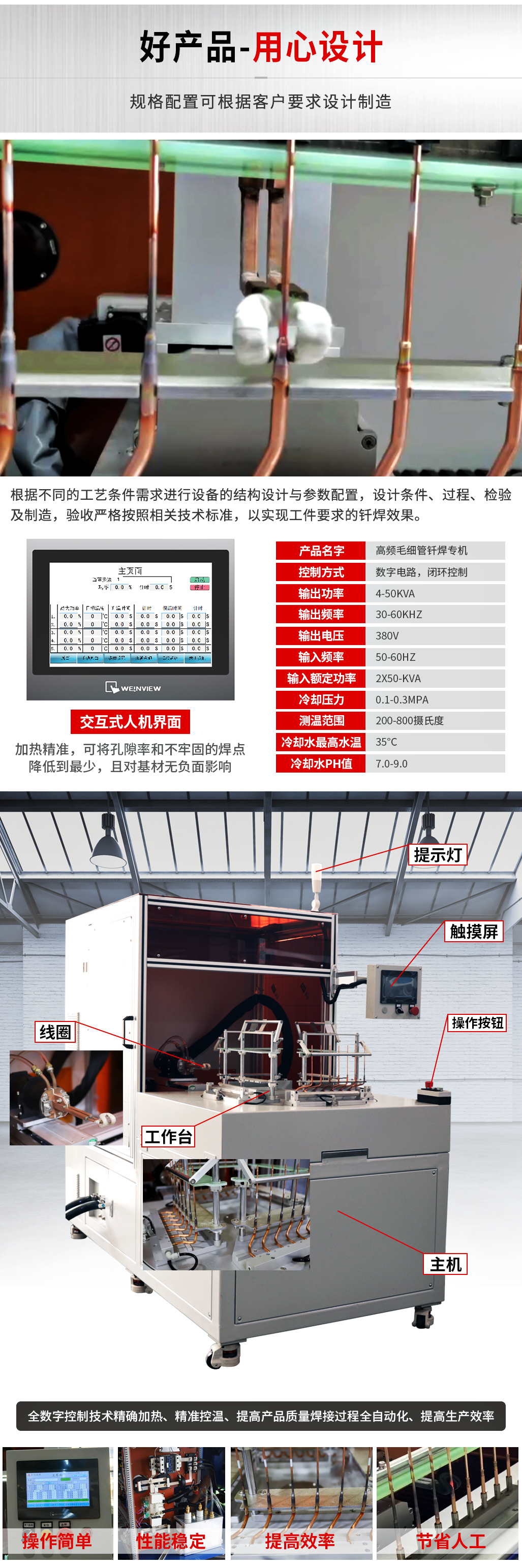 规模量产 production生产厂家直营,欢迎实地考察洽谈,可针对钎焊/热装/热拆/退火/透热/热锻/预热/平面加热/手持式/淬火等工艺给予解决方案;年生产能力上万台。 生产厂家直营,欢迎实地考察洽谈,可针对钎焊/热装/热拆/退火/透热/热锻/预热/平面加热/手持式/淬火等工艺给予解决方案;年生产能力上万台。