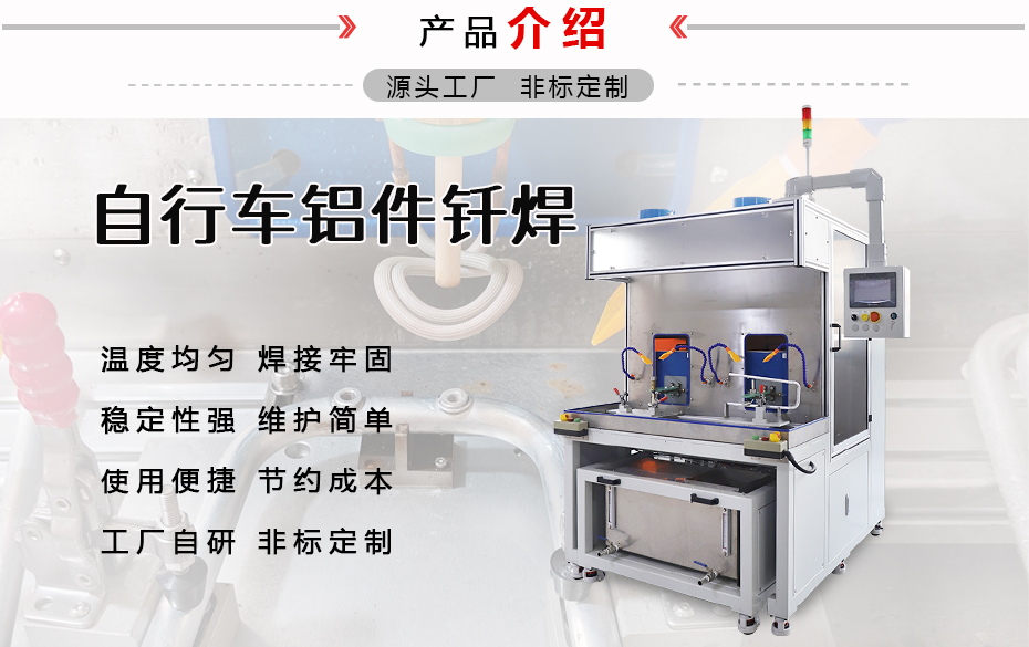 型号:多功能自行车自动硬焊机 特点:精准控制、一体化设计、模块化设计等 相关参数:可按需求定制
