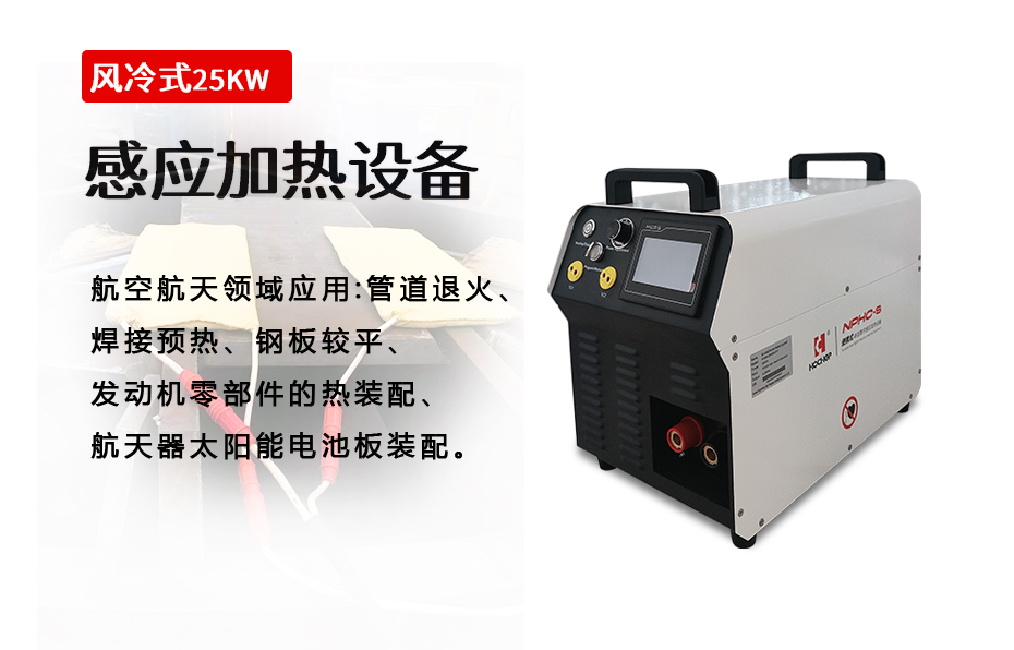 风冷式感应加热设备系统功能强大,性能优越,适用于各种特殊场合。特殊钢材的焊前预热和焊后热处理是感应加热的一个重要应用领域,钢材先预热再焊接可以降低应力、提升焊接强度、防止开裂,后热则用于消氢、退火、回火、正火等工艺。如环缝自动焊接预热、接口防腐涂覆预热、海上平台焊接预热、转子热拆装、焊后消氢、普通加热、焊后热处理、校直、热套、热拆、透热、晶体生长、热涂覆等。